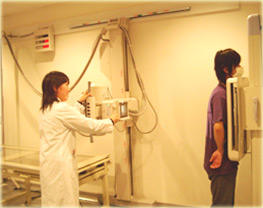 X線を身体に照射し、透過したX線の分布をフィルムやモニター上で画像にして診断する装置です。 -