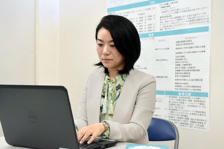 今後は、今の研究を通して医療と福祉の記録の標準化について取り組むことで、記録の書き方で悩む人を少しでも減らすことができればと考えています。また、せっかく書いた記録が活用されない現状があるため、記録を有効活用する方法の具体的な提案を行っていきたいです。