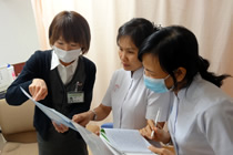 研修員として来日したのは、ファム・ティ・トゥオン・ミンさん(放射線医)、レ・ティ・ミィ・フォンさん(看護師)、グエン・ティ・ヒエンさん(看護師)、レ・ソン・トゥ・ゴックさん(臨床検査技師)の4名。国福病院、山王メディカルセンターおよび三田病院の3病院を研修施設として、人間ドックに係る作業の流れや受診者への対応などを実地で学びました。各施設においてきめの細かい研修プログラムを提供した効果があり、研修員は皆、日本型の人間ドックに関する理解を深めることができました。