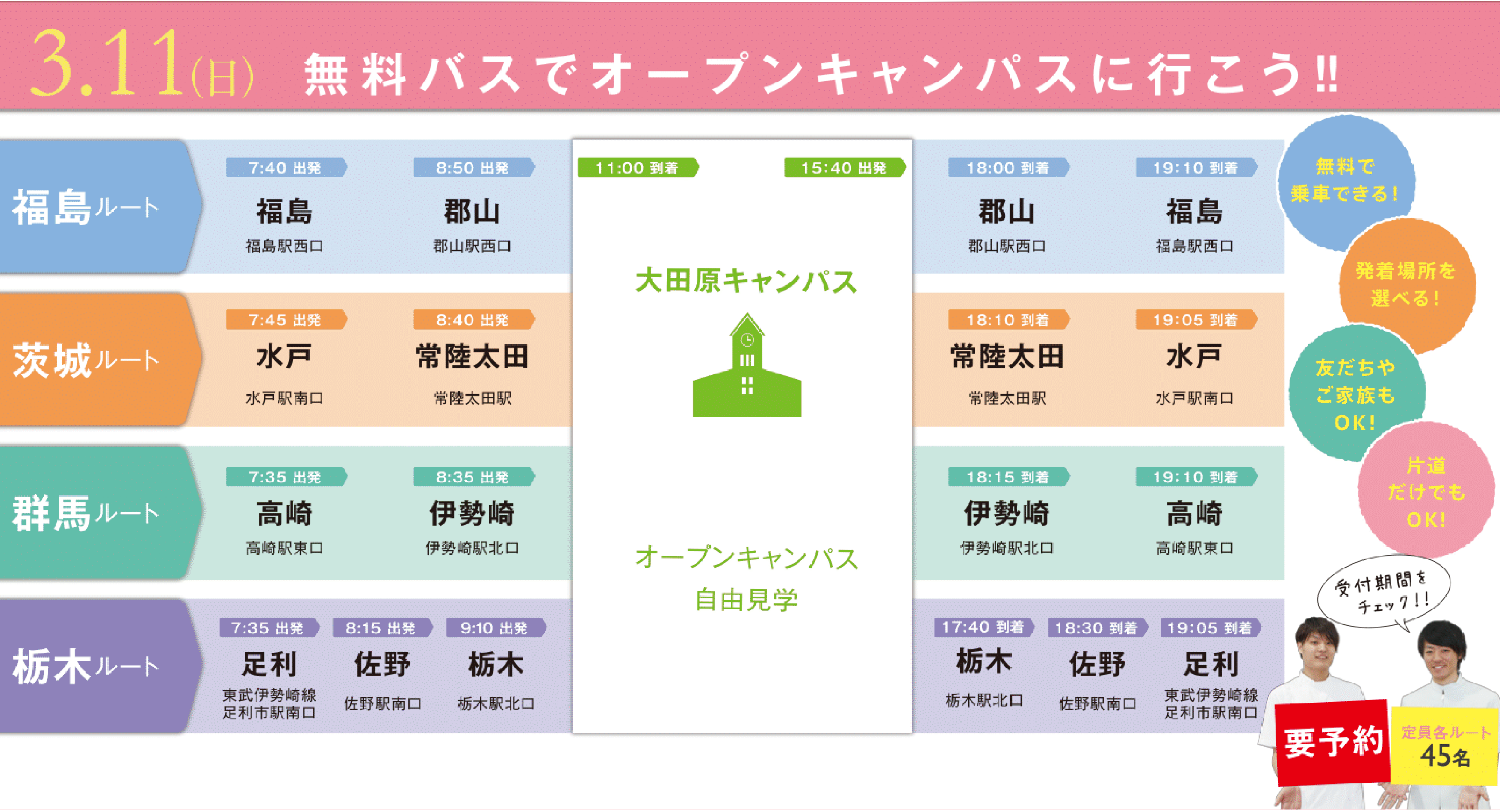 - ■ 無料バスツアーでオープンキャンパスに行こう!! 詳細はコチラ