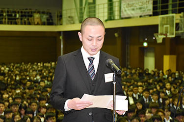本日、夢と希望と勇気をもって、人生の新しい一歩を踏み出された皆様の、今後のご活躍とご健闘を祈念して、式辞とさせていただきます。