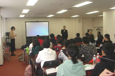 ![]() 小林SHM学科長の説明を受ける学生達 |