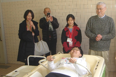 ![]() 絹木准教授による介護浴槽体験 |