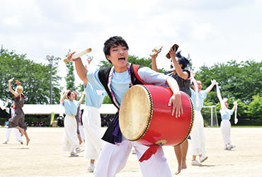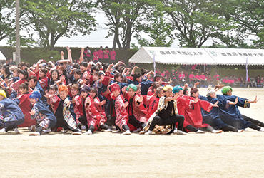 国際医療福祉大学の運動会名物「応援合戦」も各学科、気合の入ったパフォーマンスを披露。中でも学科伝統の"よさこい"で連覇を続ける看護学科は、練習の成果を存分に発揮し、今年も圧巻の演技で優勝しました。惜しくも優勝を逃した言語聴覚学科の"エイサー"も和太鼓に合わせた迫力の演技で会場を沸かせました。