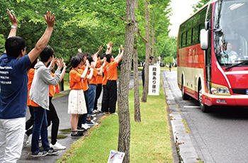 【無料バスツアー】学生・職員みんなでバスをお見送り |