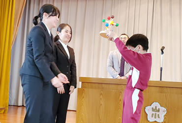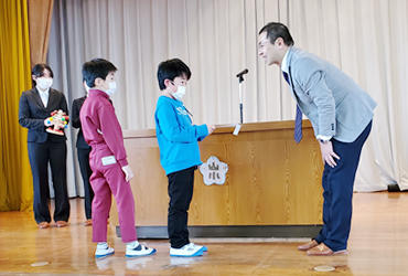 令和2年2月25日に宮城県の山元町立山下小学校で、ベルマーク教材の寄贈式典が行われ、本学のIUHWボランティアセンター大石剛史センター長、学生、ボランティアコーディネーターの職員が出席しました。