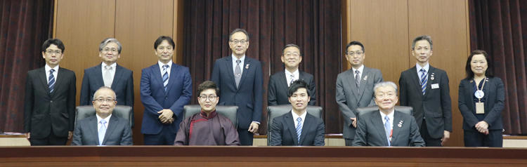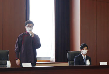 奨学生代表の西片春馬さんとジャラガルサイハン・サロールフナンさんの2人が自己紹介し、金杉社長挨拶の後、認証状が授与されました。これに対し、大友学長がお礼の挨拶をしました。