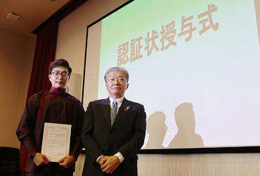 認証状をいただいた西片さん -