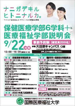 9月22日(火・祝)保健医療学部+医療福祉学部説明会を開催(会場:大田原キャンパス)