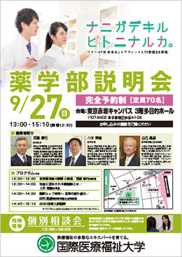 9月27日(日)薬剤師をめざす方お待ちしています。薬学部説明会を開催