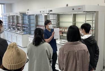 続いて各学科の教室や実習室をめぐる「キャンパスツアー」を実施。先生や学生が直接、講義や体験などを交えて各学科の特長などについて参加者への説明を行いました。