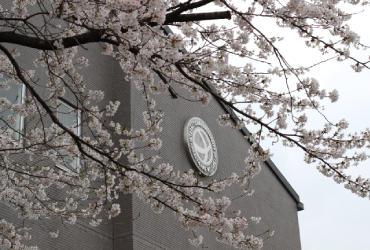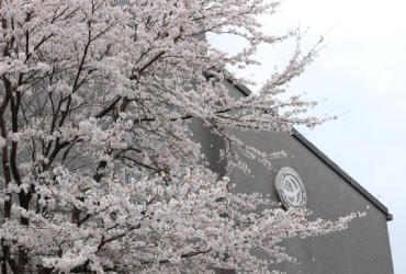 例年より早く、キャンパス内の桜が見ごろです。新入生を入学式(4月3日)で迎えるまで、咲いていてほしいと願っています。(写真部)