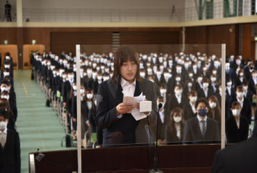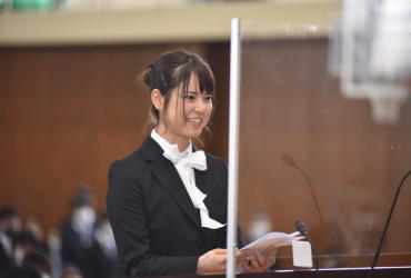 続いて学部新入生を代表して薬学部薬学科の臼井帆ノ佳さんと、大学院新入生を代表して保健医療学専攻看護学分野の田代恵美さんが誓いの言葉を述べました。