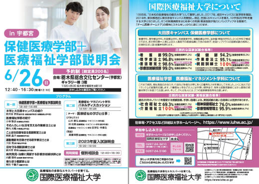 6⽉26⽇(⽇)保健医療学部+医療福祉学部説明会(in宇都宮)を開催