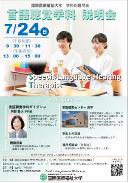高校生および受験生を対象とした「言語聴覚学科説明会」を開催いたします。お気軽にご参加ください。