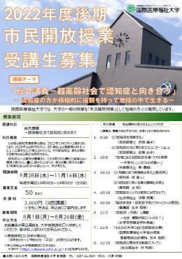 国際医療福祉大学大田原キャンパスでは、本学の教育・研究を広く地域社会に開放するための取り組みの一環として、本学学生向け授業を地域の方々に受講していただけるように「市民開放授業」を実施しております。