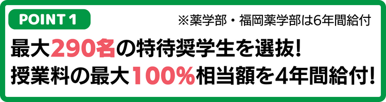 「特待奨学生S(授業料100%相当額給付)」と、「特待奨学生A(授業料50%相当額給付)」の選抜が行われるのは特待奨学生特別選抜だけ!給付型なので、もちろん返還は不要です。