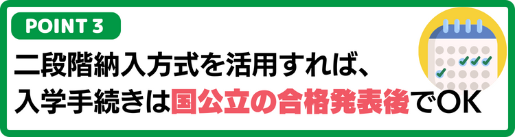 国公立大学の合格発表後なので、合否を確認してから手続きしたいという受験生にぴったりです。
