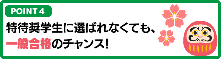 特待奨学生だけでなく、一般合格者も選抜します。万が一特待奨学生に選ばれなくても、一般合格を獲得できれば検定料が無駄になりません。