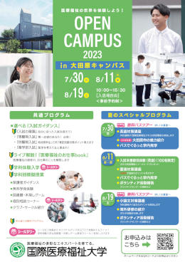 2023年度 大田原オープンキャンパス参加申し込み開始
