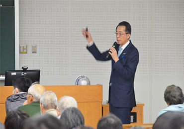 第4回は、『一人ひとりの、生きるに、活きる』と題し、株式会社ツムラ代表取締役社長CEOの加藤照和先生が講義をされ、本学の学生と教職員及び市民約250名が聴講しました。