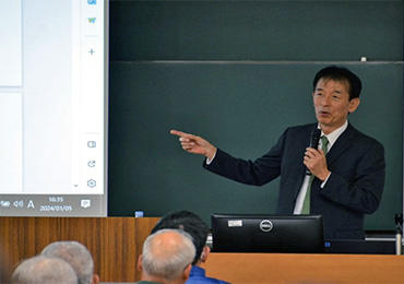 第7回は1月5日(金)、財務省元財務官で本学特任教授の山﨑達雄先生に「元・財務官が語る最近の国際情勢」と題して講義いただき、約110人の学生・教員・市民が聴講しました。