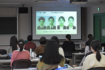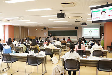 今回は資生堂ジャパンから講師の方を招き、就職活動における第一印象をアップするためのポイントを教えていただきました。講習では会場にスキンケアやメイクアップの道具を一式ご用意いただき、実際に学生自身が講師の指導でスキンケアやメイクを行いました。医療従事者として、親しみやすく清潔感のあるメイク、ヘアスタイルや表情なども学ぶことができる実践的な内容となっており、社会人になるための準備として、大変有意義な講習となりました。