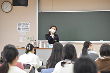 - 「メイクについての知識が無かったため、今回の講座に参加させていただき、とても勉強になりました。就職活動だけでなく、これから始まる実習にも役立つ内容だと思いました。」
