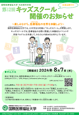 国際医療福祉大学では、小中学生を対象に「キッズスクール」を開催します。