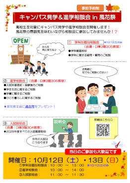 10月12日(土)13日(日) キャンパス見学&進学相談会in風花祭 開催