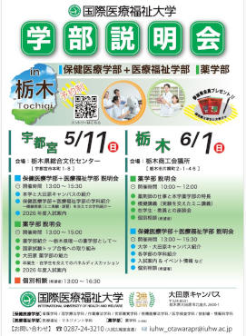 国際医療福祉大学の説明会を栃木県の2会場で出張開催します!