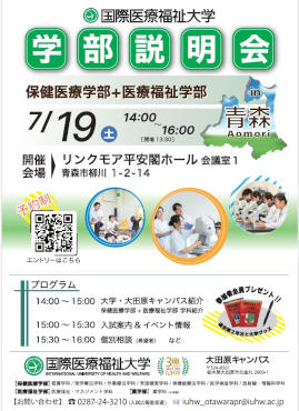国際医療福祉大学 保健医療学部・医療福祉学部の説明会を青森県で出張開催します!