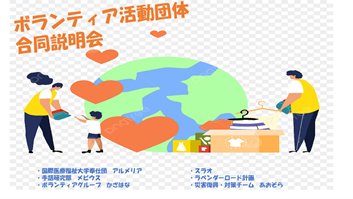国際医療福祉大学「IUHWボランティアセンター」では、1・2年生を対象としたボランティア活動団体合同説明会を開催しました。 説明会には6団体参加し、パワーポイントを使いボランティア団体の活動内容等をわかりやすく説明してくれました。 当日は教員、1・2年生がたくさん参加してくださいました。 これを機会にたくさんの学生がボランティアに興味を持ち、参加してくれることを願っています。