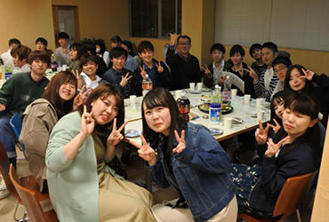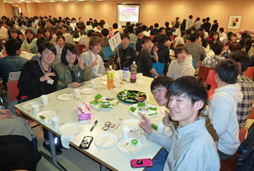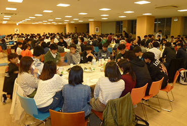 入学したばかりの新1年生、「友達できるかなぁ・・・。」は、数ある不安の中の1つではないでしょうか。そんな不安を解決しようとする取り組みとして、当学科では毎年4月に新入生歓迎会(welcome party)を開催しています。新1年生は120名の大人数であるため、人に慣れる事、あるいは気の合う仲間を見つけるには時間がかかります。したがって、この時期に、ゼミの仲間、先輩と楽しみながら交流を持つことは、非常に心強いはずです。 本学科のwelcome partyは、2年生が中心となり企画から実施を行います。会食やゲーム、抽選会を楽しみながら、ゼミの先輩や仲間、教員と過ごす2時間ほどのイベントです。本年も1年生全員が参加しました。2年生のリーダーシップにより皆が楽しんでおり、多くの笑顔と笑いが飛び交う2時間でした。「友達を作りたい」「先輩と話したい」「先生に名前を憶えてもらいたい」 こうした期待に応えてゆくことが、入学時の不安を解決してゆく近道であると信じ、当学科では、在学生・教員ともに温かい環境作りに取り組んでいます。