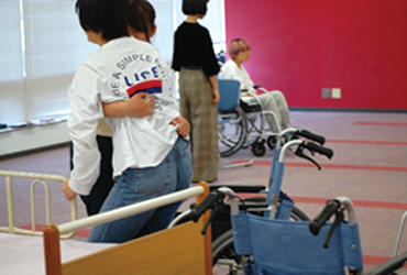 また、理学療法学科から先生をお招きし、身体機能の専門家の視点から車椅子の操作方法や移乗動作などを丁寧に分かりやく解説をして頂きました。