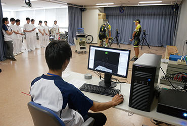 今回は、大田原キャンパスで選手の身体機能の測定を行ないました。下肢の筋力や自転車運動時の3次元動作分析装置を用いた解析、
