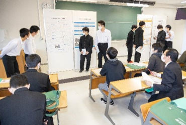 高校の生徒さん達は、グループごとに作成してきたポスターを掲示し、プレゼンテーションを行いました。学科の4年生や診療情報管理学を学ぶ大学院生も参加し、プレゼンテーションに対するディスカッションが活発に行われました。