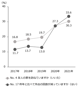 図2 基本チェックリストの質問項目No.4とNo.17の5年間における回答の変化