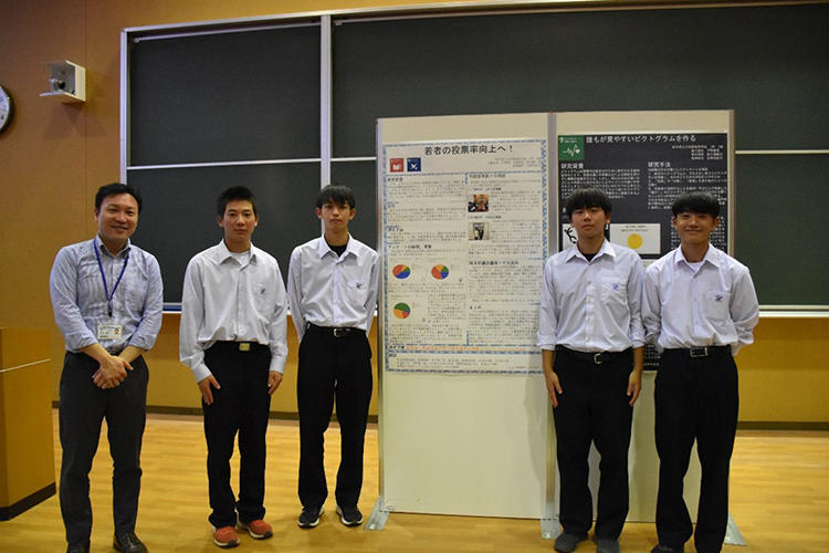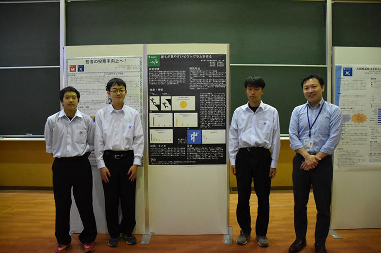 「誰もが見やすいピクトグラムを作る」の課題研究は、生徒が考案したピクトグラムを外国人に見てもらい、内容が伝わるかを検証したものです。知恵を出し合いオリジナルのピクトグラムを作成できたため成果を得られたと思います。