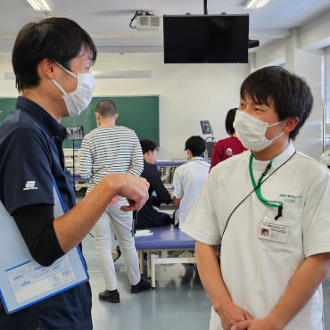 今回の試験では、成田キャンパスと小田原キャンパスから4名の理学療法学科の先生にお越し頂きました。先生方には試験の評価、学生への試験のフィードバックをして頂きました。他キャンパスの先生方には、学生へ丁寧にフィードバックを頂き、感謝いたします。