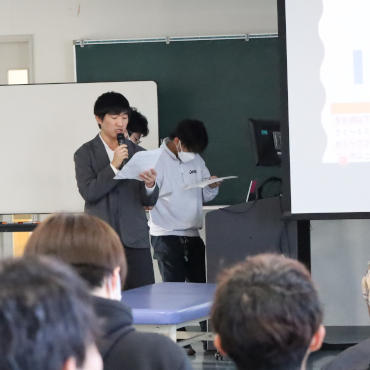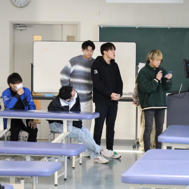 本日は、「運動学実習Ⅱ」の研究発表会でした。この講義は、2年生後期の演習授業です。授業内容は、2年生の早期より研究に触れ、自分たちの興味がある分野でグループを作り、グループで考えた仮説を基に研究計画や方法を学び、実践します。