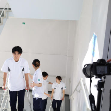 大田原キャンパスで来年度の学科パンフレットの撮影が行われました。国際医療福祉大学の入学を考えている高校生や保護者の方に理学療法学科をイメージしてもらうためのパンフレットのトビラの写真になります。 本年度も2年生の学生にお手伝い頂きました。実習風景を想定して、撮影を行いました。学生さんの素敵な笑顔が多くみられ、良い写真が撮影できました。 パンフレットで多くの高校生に大田原キャンパスの理学療法学科をアピールできればと思います。