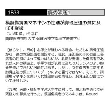Kaoru Kobayashi, Yukinobu Hiiragi: Effect of mannequin sex on the quality of chest compressions. American Journal of Emergency Medicine, in press.