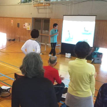 講習会の前半では体力測定(新体力テスト、体組成測定、筋柔軟性評価)、後半では、伊藤先生によるメディカル講習会が行われ、体力測定結果の見方、腰痛のセルフチェックとストレッチの方法について講義されました。