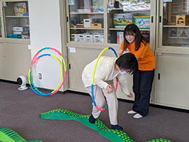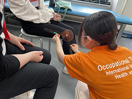 作業療法学科では、「遊びがどのように治療になるの?」「生活を助ける自助具ってなに?」「OTも検査をする?立ち上がりチャレンジ!」の3ブースで高校生のみなさんをお迎えしました。