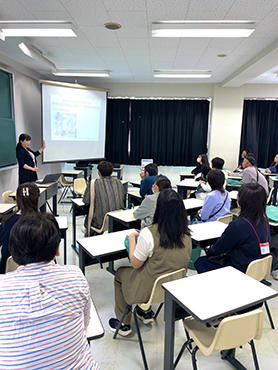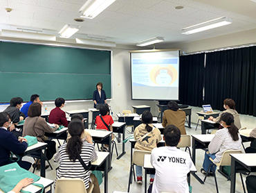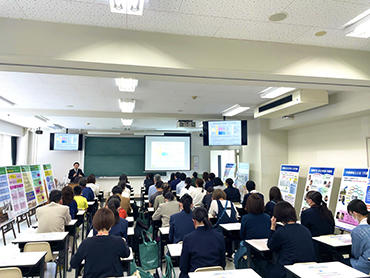 医療福祉・マネジメント学科では、前半は学科の全般的な説明を行い、後半は「医療福祉コース」「診療情報管理・経営コース」の2コースによる体験型のショートプレゼンを行いました。
