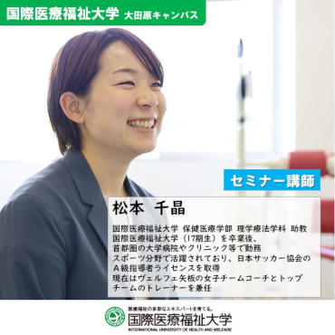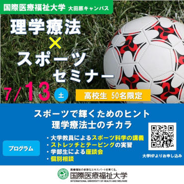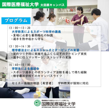 理学療法×スポーツセミナー「スポーツで輝くためのヒント、理学療法士のチカラ」:7月13日(日)に学科別説明会開催
