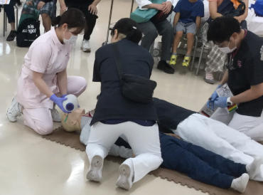 看護学科では、よさこい演舞に始まり、「コード・ブルー in大田原キャンパス Season1」救急医療をテーマに救急処置の体験や講義を行いました。他にも、VRを用いた認知症体験や赤ちゃん抱っこ体験を行いました。