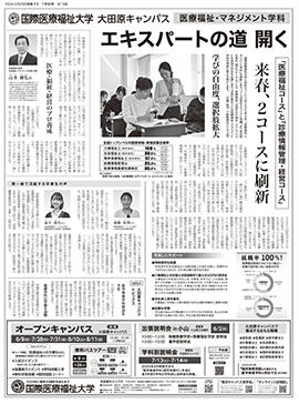 大田原キャンパス「医療福祉・マネジメント学科」は2025年4月より新たに2コース制にリニューアルされることになり、5月26日付の下野新聞に紹介の記事広告を掲載しました。