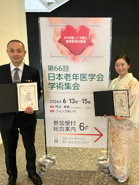 両名とも、2024年6月13日~15日に開催された第66回日本老年医学会学術集会の受賞式に参加し、沢谷洋平先生はYIA受賞者講演を行いました。